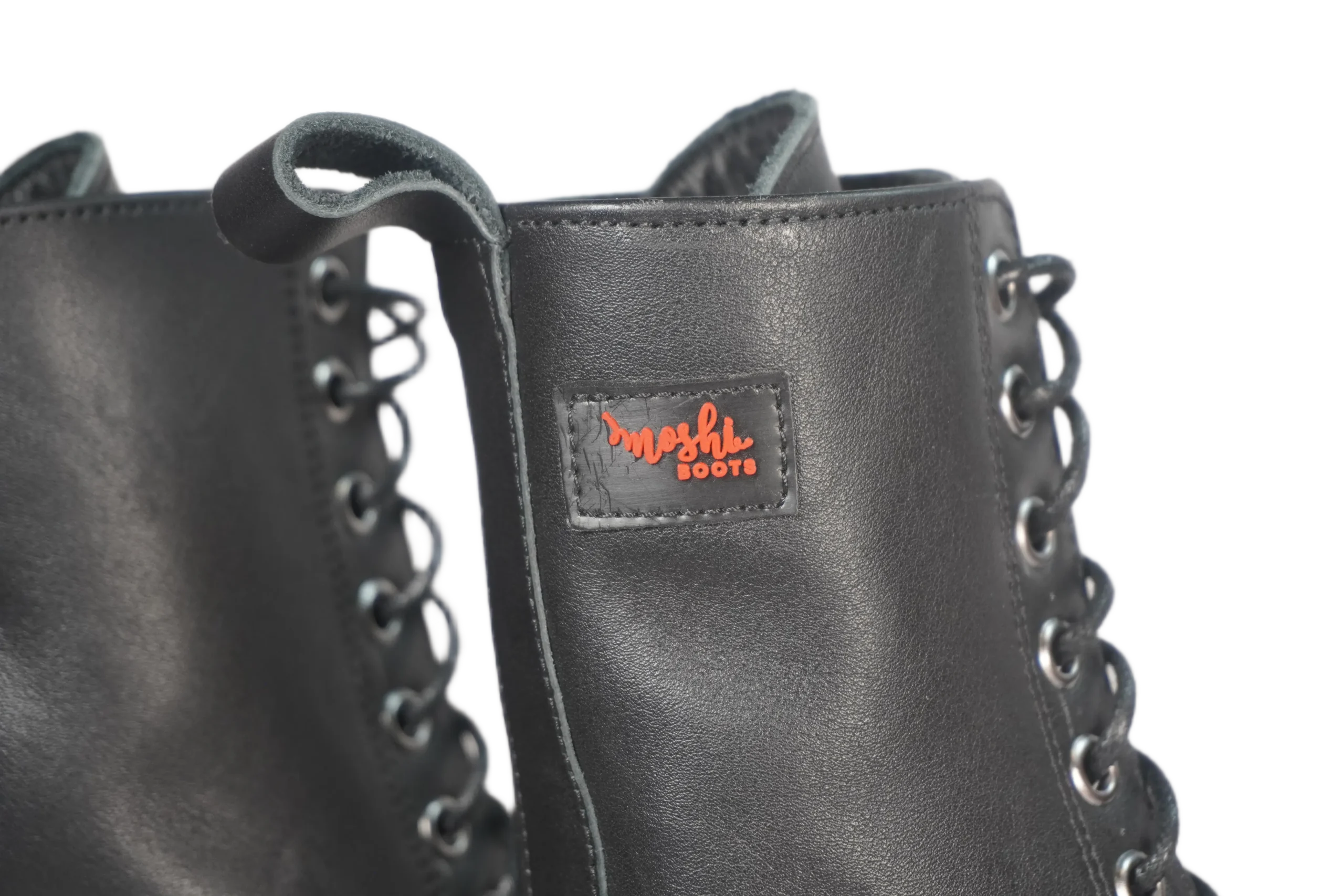 Botas MOSHI 12 hechas a mano, de caña alta y cordones, ideales para un estilo urbano fuerte y versátil. Personaliza tu par entre 40 colores y tallas desde la 34 hasta la 40.